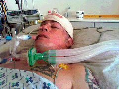 I was in a coma for a week and then I started to come through. I had an operation because I had a blood clot in my head. They cut from my forehead across my skull and took my brain out and tossed it away. “You don't need that mate." And they put a pea there. “That's going to help you more than your brain." Actually, though, they put a plate in. I've got to keep it otherwise my head will sink in. I used to get really, really bad headaches. It wasn't a headache, it was like throbbing but really painful. But it's all done now. I don't have any pain like that anymore.